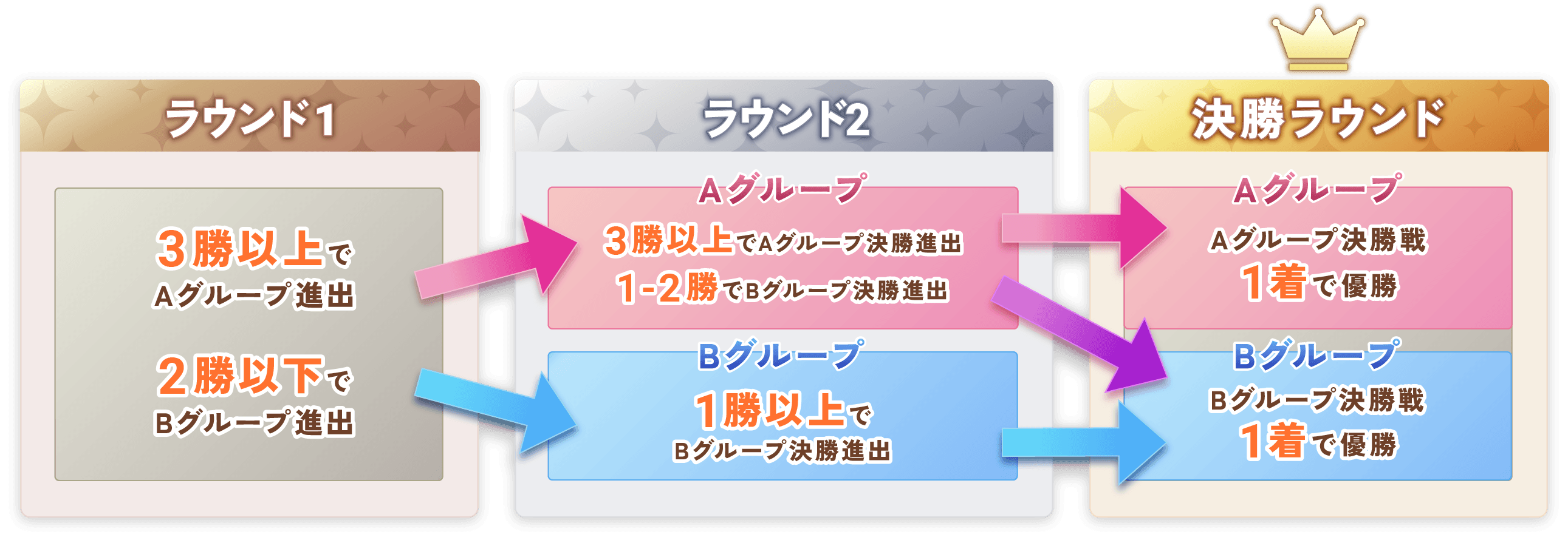 各ラウンドでの勝利数、および順位に応じて報酬を獲得できます。3人の殿堂入りウマ娘